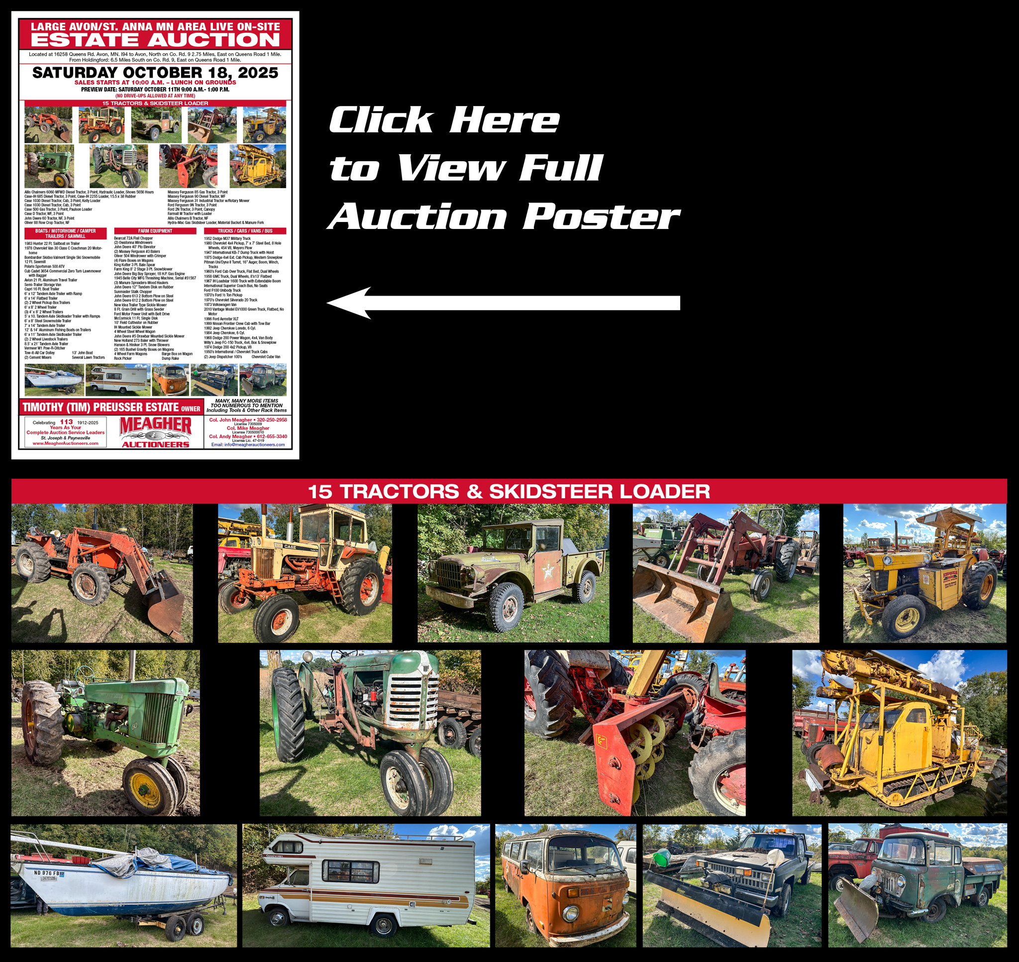 Meagher Auctioneers • Your complete auction service leaders since 1912! St. Joseph & Paynesville, Minnesota. Meagher Auctioneers have been in the auction business since 1912 with 2nd & 3rd generation full-time auctioneers.
